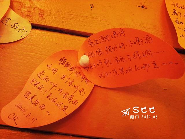写了纸条,后面真的是酒吧,免费听歌。