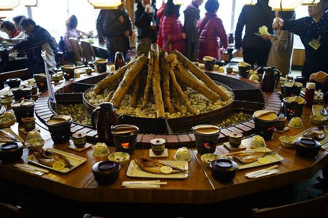 第一天,下飞机已经是晚餐时间了,这次是跟团游,我们这个团也就20多个人,除了另一对年轻小夫妻其他都是一个公司的退休老人。后来才得知他们公司也是日企,老板也在,特地来带他们玩。大巴的第一站就是旭山拉面村。