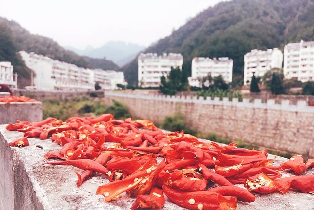 放下行李,随便在小镇上转一转,已经到了晒秋的季节