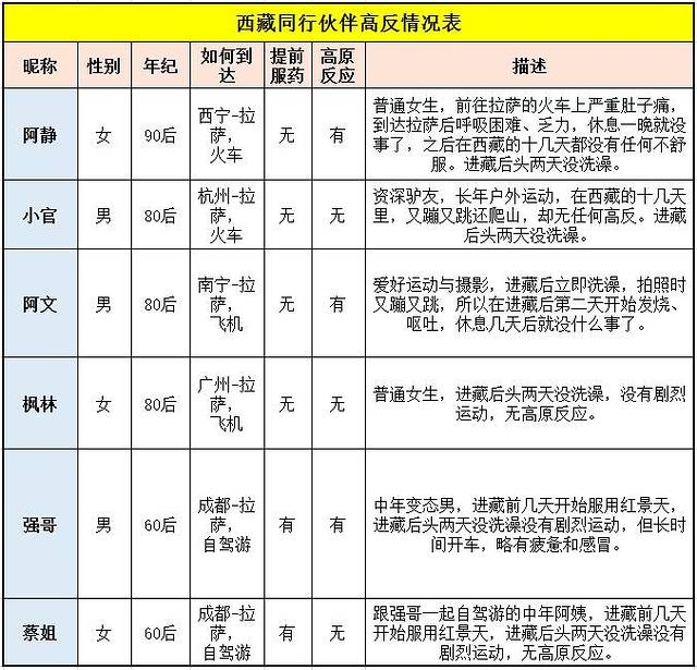 首先,给大家看一下此次行程中我和同伴们的高反情况:
