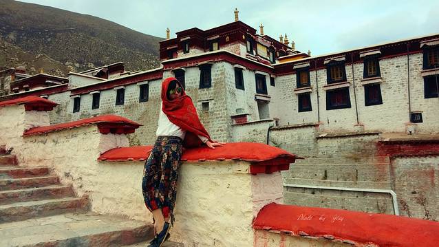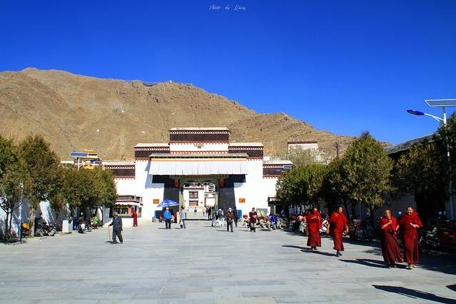 之后我们坐公交车赶在下午5点前到达哲蚌寺,平时门票50元,但每天下午5点过后门票只要10元哦!当然,代价就是我们在里面逛了没多久就天黑了,被景区工作人员赶出来。阿文是学建筑的,很感兴趣,第二天又特地过去看。