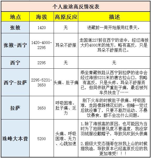 估计很多人都担心高原反应问题,所以就放在前面讲一下,让计划出行的童鞋做个参考哈!
