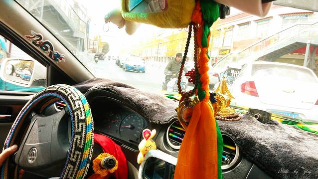 今天坐上一辆很精致的的士,司机把车里面的每个细节都装饰的很好看,从头到尾都很有品位,害我舍不得下车。拉萨的市区不大,基本上在市区的任意两点间的打车费都不会超过起步价。