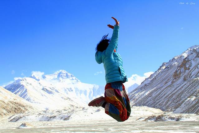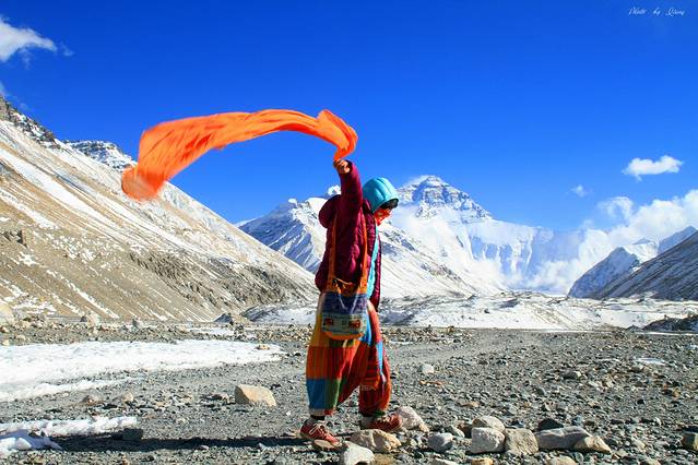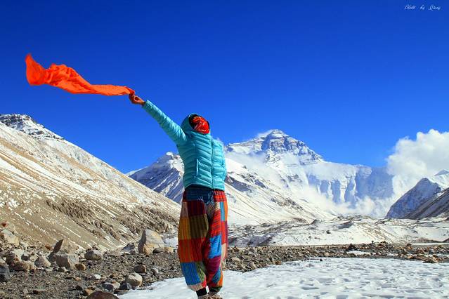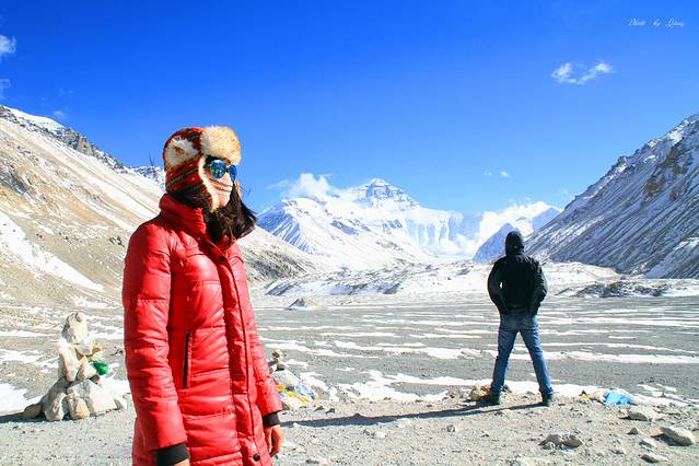 由于时间有限,大家都各自行动。珠峰大本营海拔5200米,风好大,我为了拍照,要风度不要温度,减少了衣服裤子量,好冷,头好疼,目测是高原反应。