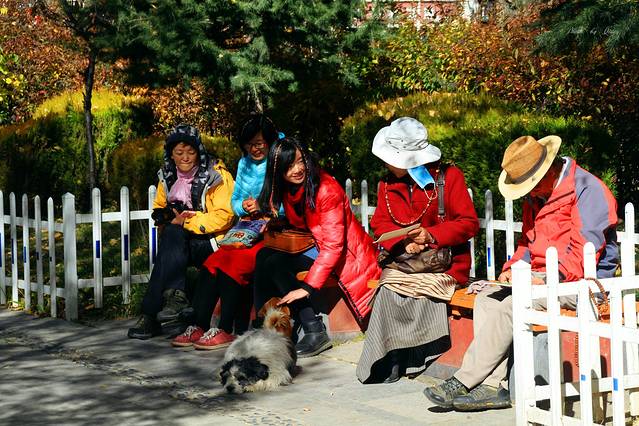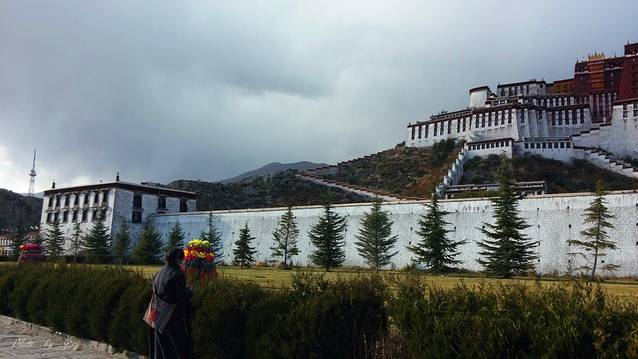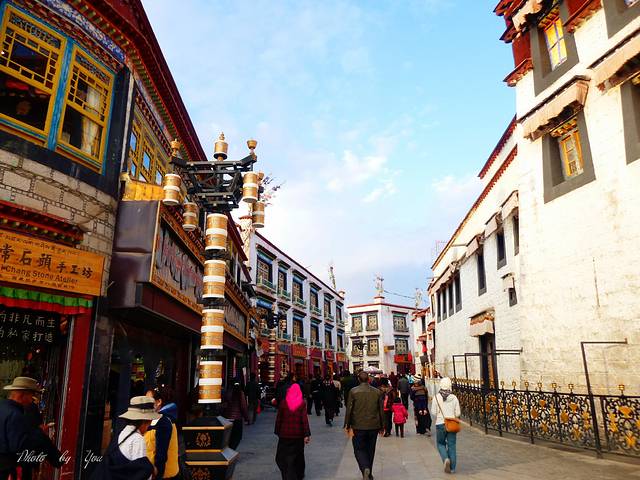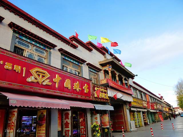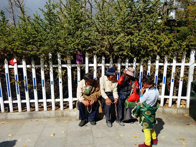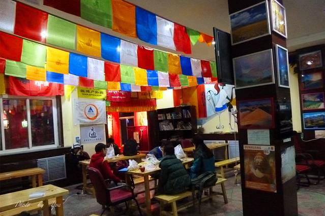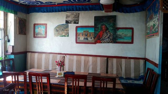 我们在大街上没有目的的闲逛、聊天,不知不觉走到了罗布林卡,实在不知道干嘛好,便打算进去打发时间,去售票处问价格的时候,听觉灵敏的我突然听到隔壁一对“情侣”说的是粤语,老乡啊!兴奋的我感觉搭讪,才知道他们女的叫枫林,广东人,男生叫阿文,广西人,他们不是情侣,刚刚一起从林芝游玩回来,也是在拉萨很无聊在打发时间……就这样,原本3个人的小团队变成5个人了,不约而同觅食去!