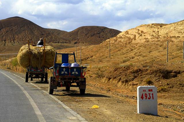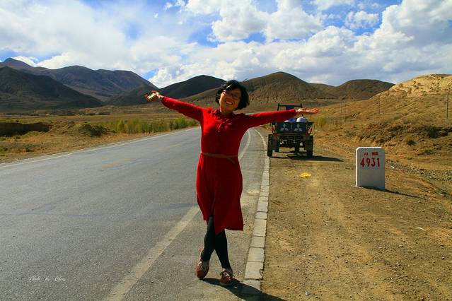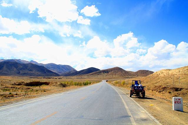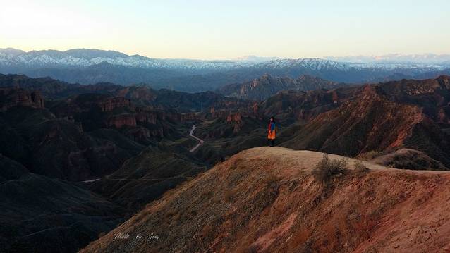 天还没彻底亮,司机中途停下来给我们拍照,也不知道这个地方是哪里,有什么故事。