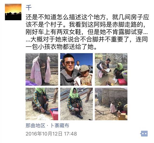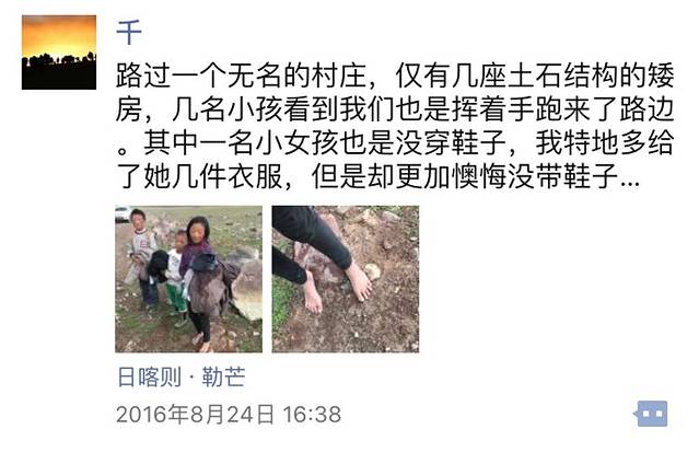 话说之后我跟男神就没有联系了,只是偶尔能在微信朋友圈看到他的动态,他开青年旅舍,但是他的朋友圈里找不到任何与住宿有关的信息,他是户外领队,但我也从来看他发过任何相关的广告,相反,他的朋友圈充斥着以下内容(以下图片来自千的微信朋友圈):