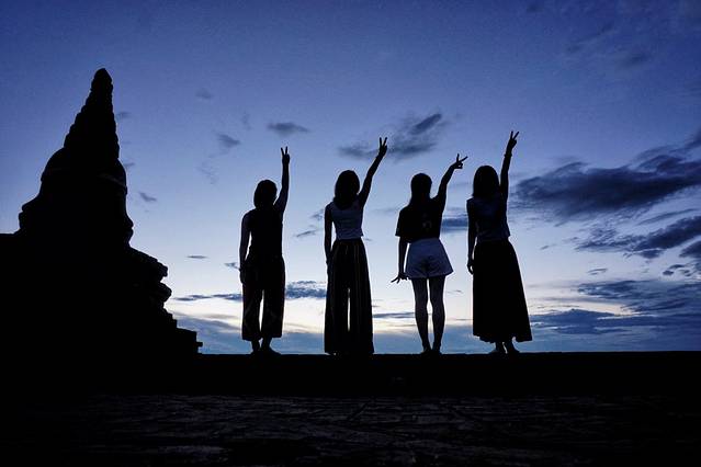 接下来曼德勒山站的high点来了!四人找到一处取景地后就是各种拍拍拍啊,正面、背面、站着、坐着,安静的,跳跃的~啧啧啧!说好的矜持呢?