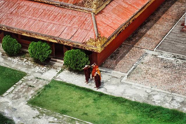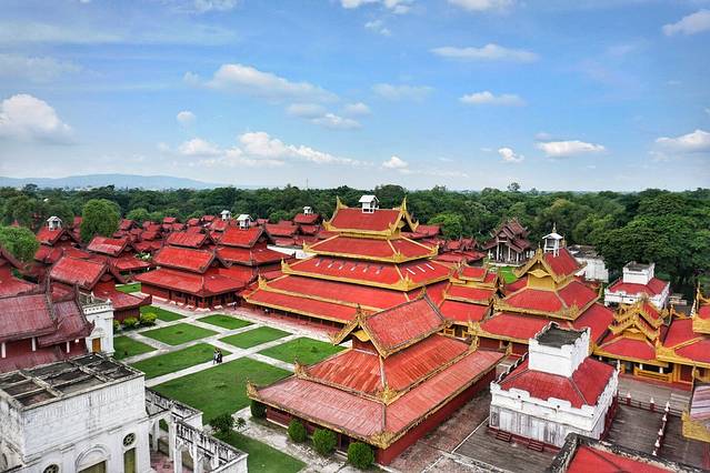曼德勒皇宫的规模和格局对于来自大天朝的我们而言,也就笑笑不说话~不过登上观光台后,风景还是hin不错的,橘红的建筑在一片苍翠的绿化中显得尤为耀眼。