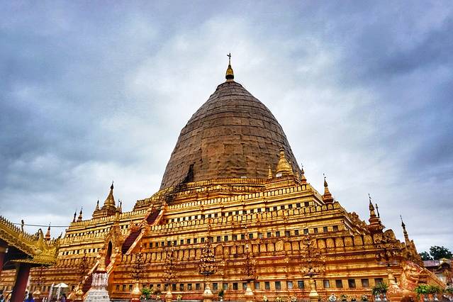 唯一一座登塔楼梯建在塔外的古塔,观赏日落的最佳地——瑞山陀塔(Shwesandaw Paya):塔身高耸,人们可以通过四面陡峭的石阶登上塔顶。瑞山陀塔是由阿努律陀建造1057年,约有8层楼高,因日落观赏而闻名远洋,吸引着世界各地游客的到来,都希望亲眼目睹瑞山陀塔与夕阳霞光交相辉映的壮丽景观。