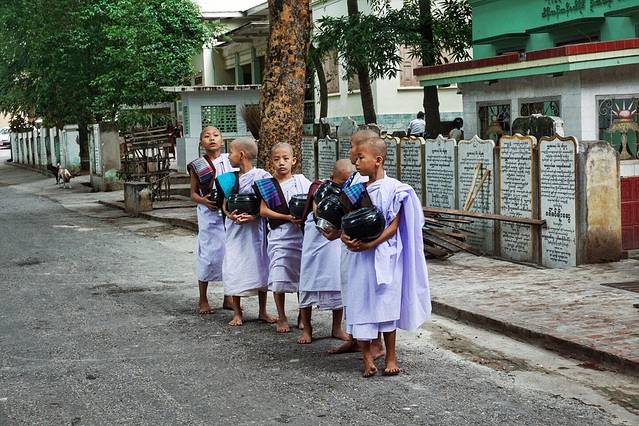 第二站:Maha Gandayon Monastery马哈伽纳扬僧院/千人僧饭:马哈伽纳扬僧院是全缅甸最大的僧院。这里犹如一所僧人大学,学生人数接近2000人。每天上午10点,各国游客云集至此,目睹千名和尚一同用午餐的画面,冲击震撼。缅甸僧侣一天只吃2餐,一餐在清晨4点钟,一餐在上午10点钟,过午不食,只能喝水。至于和尚们的伙食,荤素都有,鸡鸭鱼肉、水果蔬菜、茶水饮料一样不少。【是的,又是一段引用】