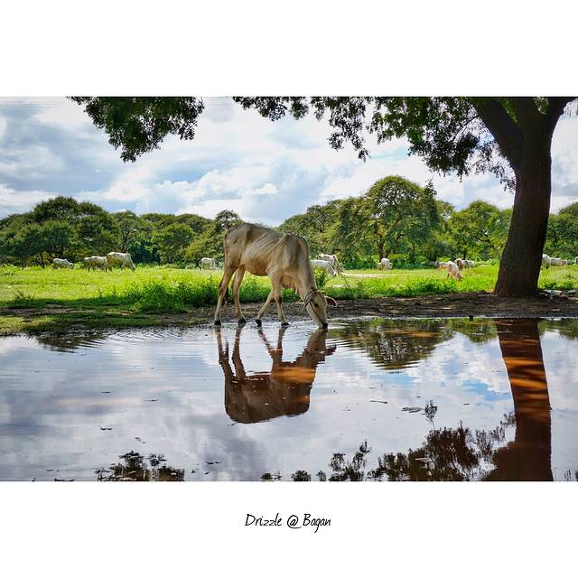 我们是在帕塔达塔(Pyathada Pagoda)看的日落,这个塔上的平台非常的宽大,可以容下几百上千人观日落,而且附近有村庄,所以可以见到放牧归来的羊群及牛群。