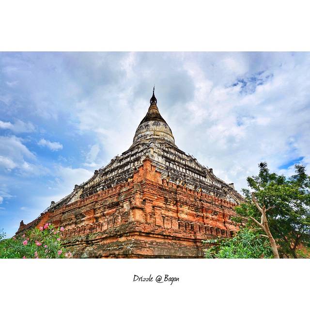 最大的佛塔——缅甸大玛央吉佛塔:造型没有众佛塔那彷如童话城堡般的尖尖塔顶,倒更像是南美玛雅金字塔一般,层层堆上,最顶处是个祭台样的平台。达玛央吉塔是公元1170年拿勒胡王所建。整个塔体全部由大块红砖砌成,砖与砖之间没有水泥相连却结合十分紧密,不仅看不见缝隙,甚至连针都插不进去,令人叹为观止。1167年开建达玛央吉,工程未完就停工了,塔尖都还没来得及建就此荒废在旷野中,所以,我们现在看到的达玛央吉只有塔座,没有塔尖。【因为最后已经热懵逼了,我小李小郭选择放弃,屹立不倒的大侠独自去转悠,结果成功迷路,你说大不大?】