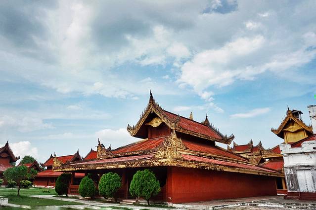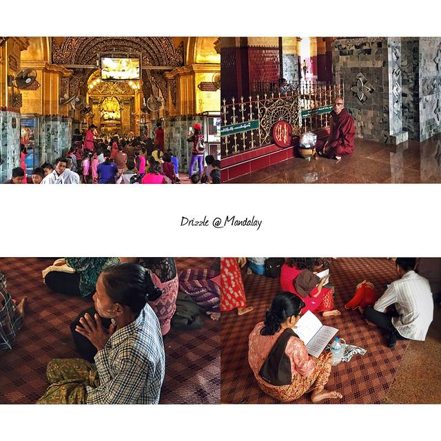 第一站,Mahamuni Buddha Image马哈木尼佛塔:位于曼德勒市中心以南3公里处,是缅甸最重要的朝圣地之一。佛塔里的青铜佛像高约4米,据说是佛祖亲自开光,当地人将这座佛塔视为佛祖真身,在缅甸有着神圣的地位。虔诚的信徒将金叶贴满佛像,经年累月,金叶的厚度已经有16公分,十分壮观。每天清晨4点都要举行为佛像洗脸的仪式,吸引大量佛教徒前往参拜,但妇女不允许进入内厅的神殿,只能在门口参拜。走过大象雕塑时,最好三鞠躬。【一看这段就是攻略里copy的~不对,我这叫引用、借鉴,do u know?】