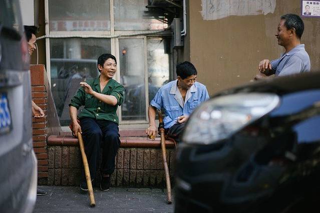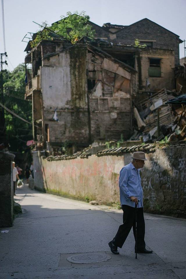 早上的阳光明媚,几个挑夫靠着路边有说有笑。在重庆,挑夫们被称为棒棒。他们都是上了年纪的中年男子,有着健壮的身材,在公车站后等着路人的吆喝,就扛起扁担,走梯爬坡。城市在发展,高楼崛起,道路四通八达,大概十八梯这种老城区才容易见到挑夫。随着这一街区的拆除,估计他们挑起扁担的日子也不多了。