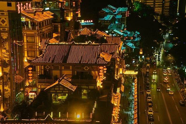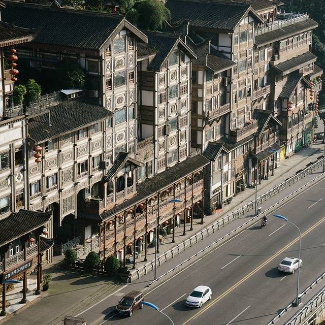 洪崖洞既不是一个悬崖,也不是一个山洞。是嘉陵江边千厮门外整整齐齐排列的一片吊脚楼。如果说四合院代表这北京民居的过去,那么吊脚楼则是重庆民居的传统。嘉陵江和长江奔流而下,巴渝之地又多丘陵。聪明而又勤劳的人民,依山傍水,架起楼阁。楼台一层层成地向上拨升,属于巴渝的历史篇章也一笔一划地书写。