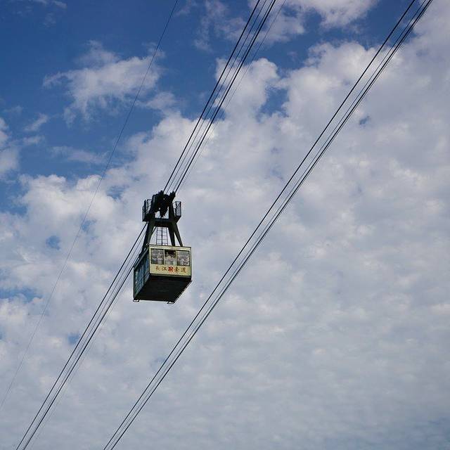 在星期六下午去坐索道确实不是一个明确的选择,购票的队伍蜿蜒曲折排到了门口,排了一个小时的队伍终于轮到了我购票。长江索道渝中半岛的站点是坐落在龙门路一座不起眼的的单体楼里面。重庆跨江的大桥有十几条,而重庆跨江的索道却只剩唯一一个。数十条大桥像巨龙跨越水面,而索道,则在比桥更高的位置,飞在空中。这是来重庆不得不来体验的项目。