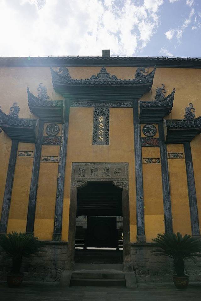 湖广会馆位于东水门大桥的西岸,经历数百年风雨,于2005年修复,重现光芒。在修建的朝天门区域各种道路不同,凭借各种问路和指引,从小什字地铁站出来的我,愣是上山下山的地走了十几分钟才到了湖广会馆。东水门大桥的西岸北侧是湖广会馆的正门牌坊,穿进去,再爬过一段小城墙,见到的黄色墙体古建筑就是湖广会馆了。