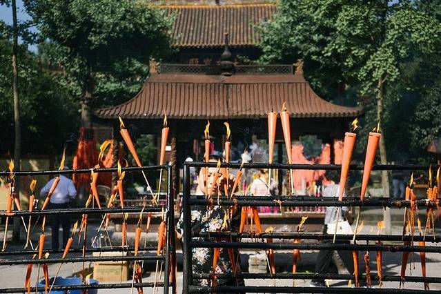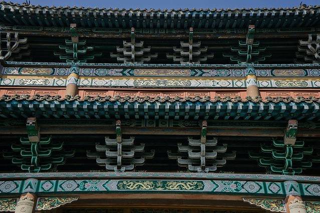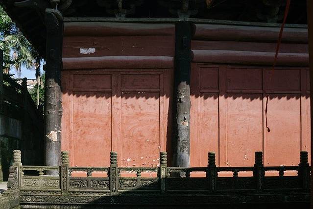 在大门口买过五块钱门票,拾级而上。寺庙清幽,僧侣来往,信男信女烧香拜佛,一派虔诚的气象。宝轮寺的主殿据说是明朝至今的建筑,斗拱硕大,还留着些许唐宋时期的豪气。红色的木门褐色的柱子漆皮掉落,岁月斑驳。