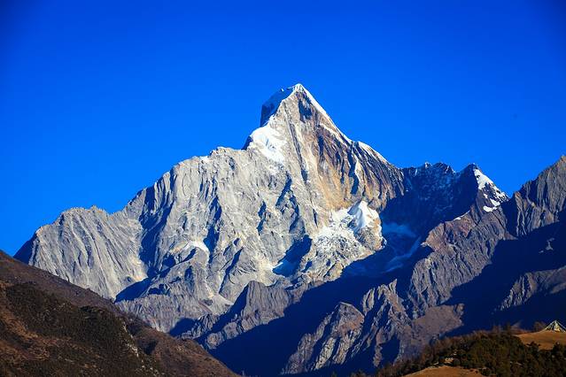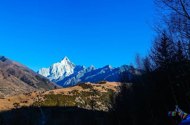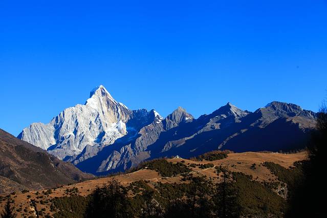 今天天气非常给力,四姑娘山的四座山峰能一览无遗。最高的山峰就是幺妹峰,海拔6250米,是四川的第二高峰,被誉为蜀山之后。