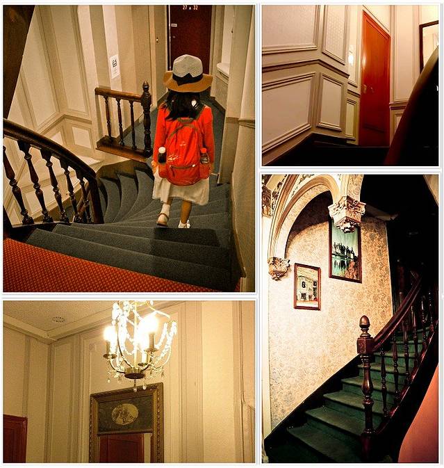 酒店内部的结构也很有趣,我们到了入住的楼层,看到有的门上只有一个房号,而有一扇门上居然有好几个房号,我们的房号赫然在内,不禁有些纳闷儿,难道要住集体宿舍 ?斗胆一推开才发现里面别有洞天,原来是一条走廊隐在门后,顺着走廊有好几个房间呢。这样的布局后来回巴黎,去德国都有遇见,应该是老房子的典型设计吧。