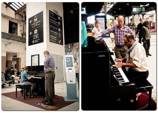 在中国,钢琴仍然被视作阳春白雪一样的事物,除了琴童家里,我们大多在演出中才能见到它的身影,父母们希冀孩子通过学习钢琴能够拥有与众不同的高贵气质,偶尔有咖啡馆摆放钢琴也是一种显示格调的象征,但是我们这一路却在多个繁忙的火车站看到它,而且每架钢琴前都是有人弹奏的,总有不急着赶路的旅客驻足倾听,弹奏得好还能赢得一阵掌声。