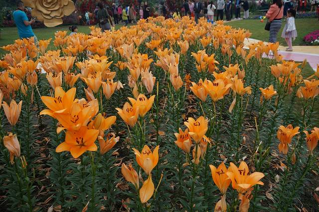 2016年金秋十月,漫花庄园百万百合花进入盛花期,在微信看见朋友发的照片,很漂亮,就想去看看,国庆节的最后一天,可能人少些,于是坐公交车前往,到动物园站下车,转198公交直达漫花庄园,很是方便。漫花庄园全年鲜花盛开不断,一年四季花展精彩纷呈,从春季的郁金香、樱花、国花牡丹、芍药,再到700种玫瑰花展,到夏季三角梅、大丽花、蓝百合,到秋冬紫罗兰、虞美人、腊梅盛开。