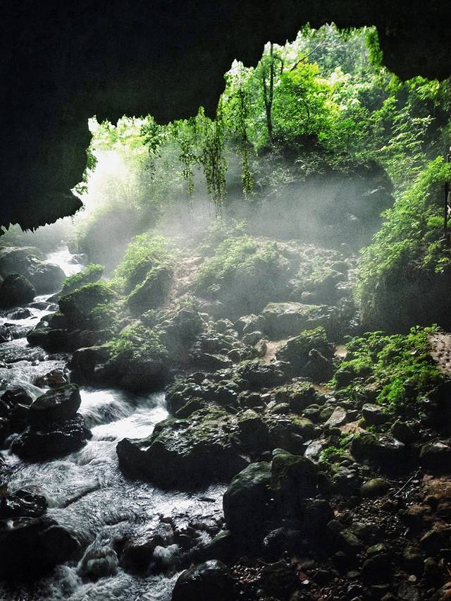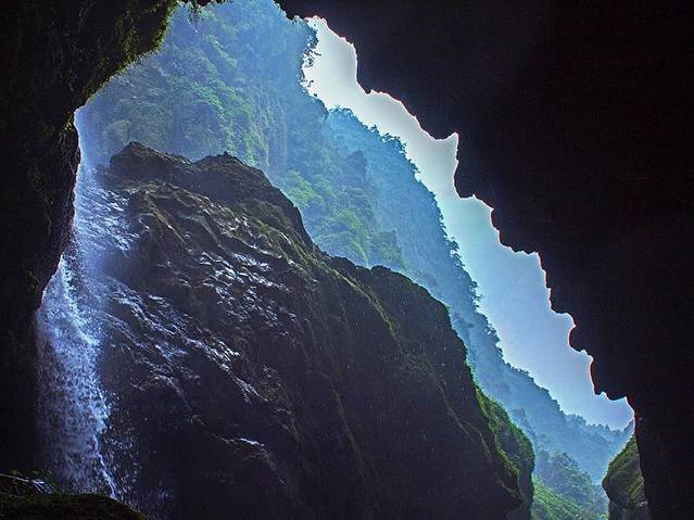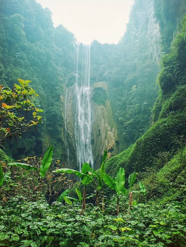 通灵大峡谷位于靖西县 城东南部32公里的湖润镇新灵村,古龙山 水源林自然保护区的南端,由念八峡、铜灵霞、古劳峡、新灵峡、新桥峡组成,总长10多公里。念八河从古龙山脉缓蜒而下,依次穿越五个峡谷,流入湖润台地。每个峡谷内荟萃了罕见的特高瀑布群、洞中瀑布、地下暗河、峡谷 溪流、洞穴奇观、古石垒、古悬葬、原始植被等自然景观与人文景观。