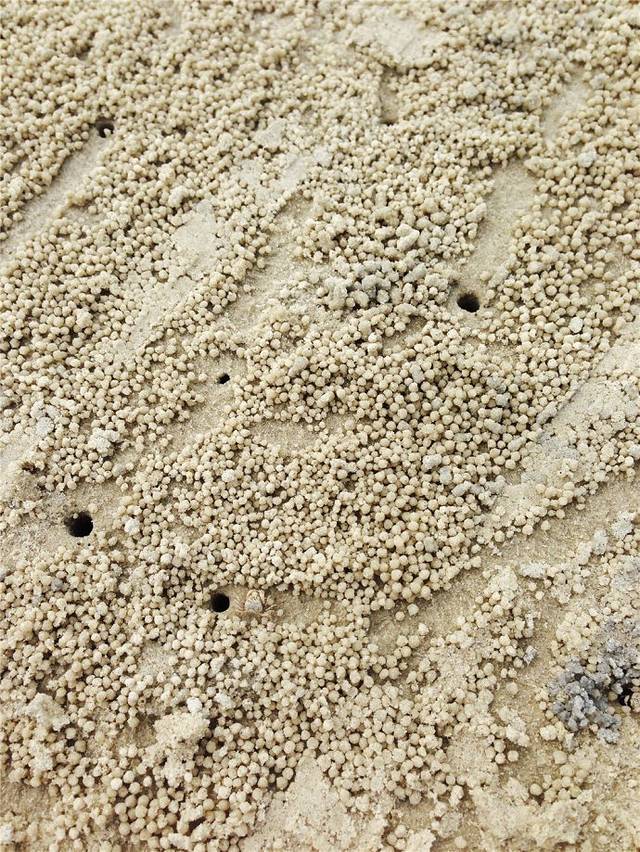 在沙滩上有密密麻麻的小洞,不仔细看根本发现不了,原来这些都是小螃蟹的窝~~