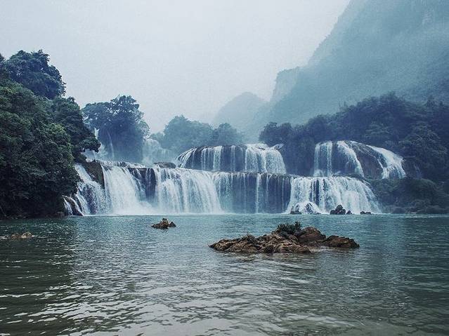 德天瀑布比我想象中的要气势磅礴,我平时看的大部分瀑布都是高山流水,细长条形的,黄果树瀑布已经算是宽的了,这回看到德天瀑布才真的有点不一样的感觉~~
