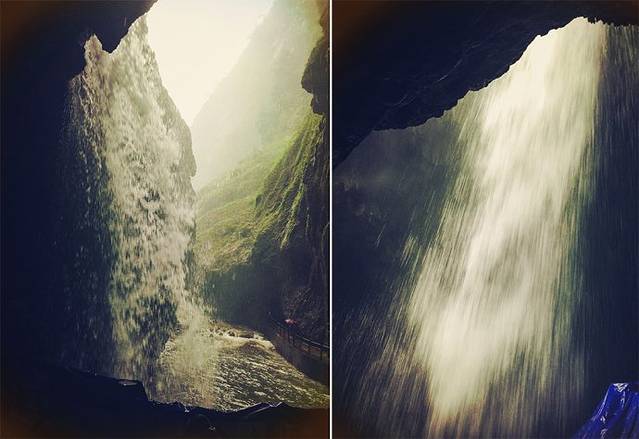 坐在船上就可以由远至近的看,最近的时候就在瀑布底下,水花飞溅满身,光是水的声响就很震撼了~~