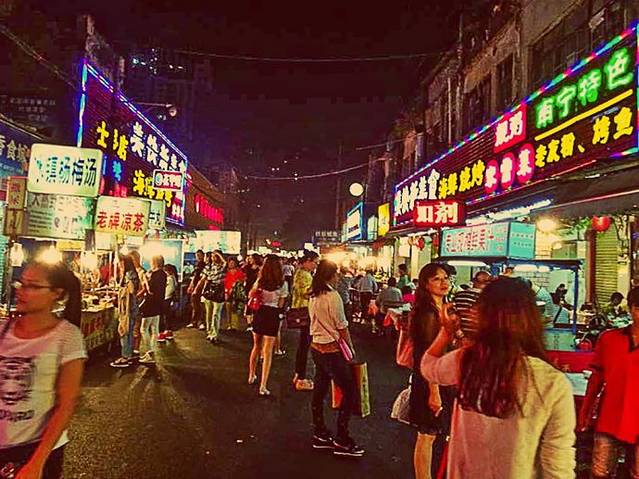 在去之前我对南宁毫无印象,就知道是广西壮族自治区,离我所知的世界很遥远~~第一天飞机下来再换大巴,到了南宁已经是傍晚了,于是酒店放下行李就直接杀去吃吃吃~~~特地去了他们那里很有名的一条小吃街——中山街
