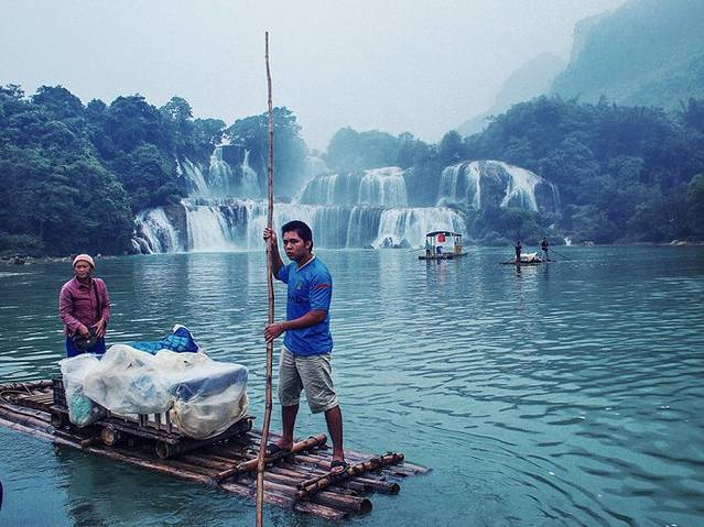 因为瀑布跨越了两国的界限,所以在湖面上就会有很多越南人向中国游客兜售货物~~~