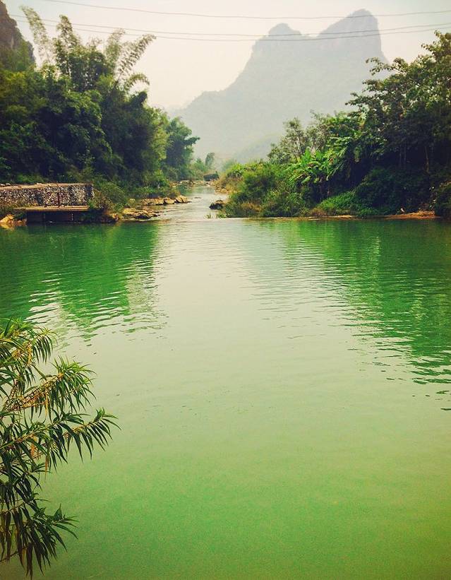 我们晚上借宿的地方就在归春界河的边上,从硕龙镇到德天瀑布,归春河十里蜿蜒相伴,中越两国以河为界。