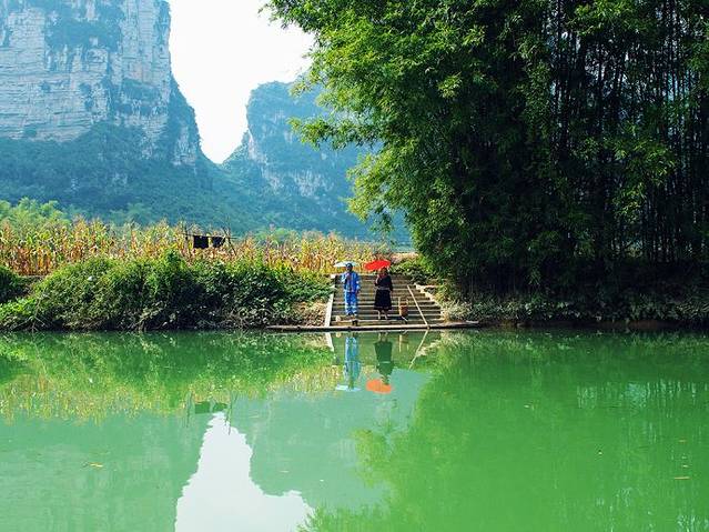 去那边游览非常轻松,进入景区后会有当地的向导陪同,走过一小段农家田园来到码头边,接下来的事情只要坐上竹筏就行了~~