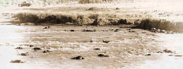 次日清晨,我们沿马拉河向东移动,河床上近百具陈尸帮我们回忆着曾经发生的惨案。