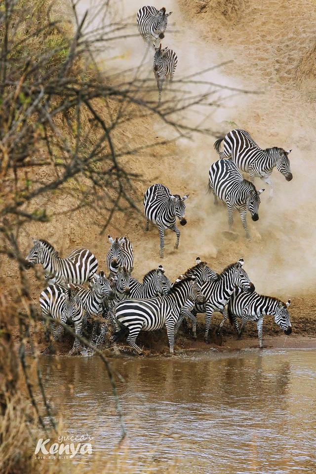 斑马是真干脆,如果把下面这张图片放大,可以看到它们下水的地方漂浮着角马的死尸……