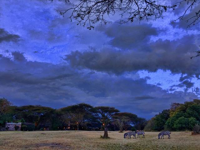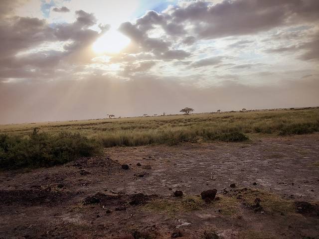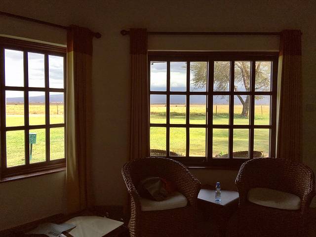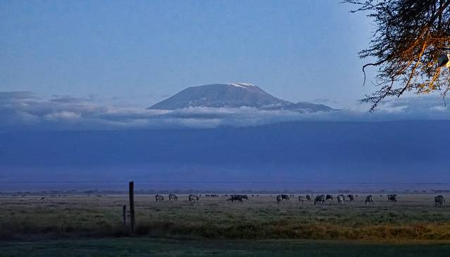 在安博塞利中央区的Ol Tukai Lodge ,每一间客房都面向乞力马扎罗山,一排简漏的栅栏外,浩瀚平原和连绵山脉仿佛是自家后院。但是除了经常来访的沙尘暴,乞力马扎罗的雪顶大部分时间被浓厚的云层覆盖,一年中大约只有60天时间,通常是在清晨或黄昏,可以一睹它的尊容。