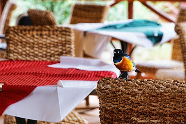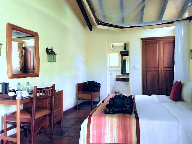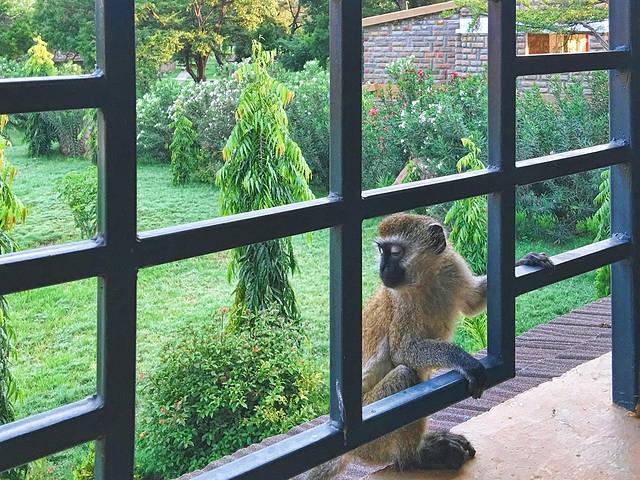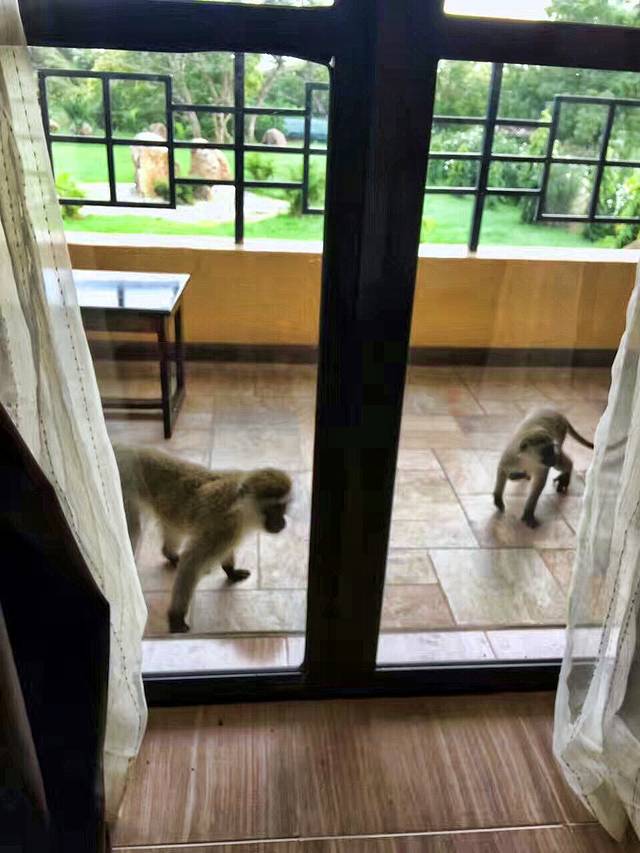 2、酒店设施和景观。相对价格而言,房间内设施只能用坑爹来形容,麻雀很小,五脏还不一定俱全,图个干净整洁,满足基本需求罢了,但是一旦打开房门,坐在阳台上也行,以某个假装文艺的姿态感受东非大地生机盎然时,天空仿佛飘来 “逼格”二字会让你瞬间领悟钱花得其实还不算太冤。同时营地里充满了各种“偶遇”,比如大草原猴几乎是标配,还有一些小家伙我们只在营地里见过,比如戴胜、南非大斑獛,薮羚,精力充沛的话,早晚safari之间在营地内部转一转会有不少收获。