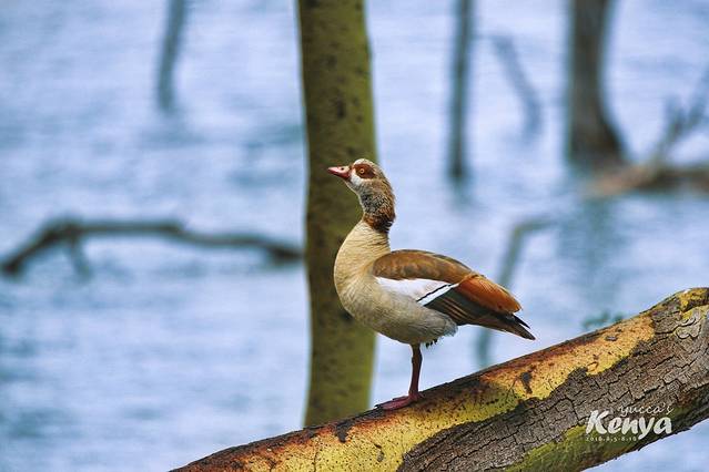 这只会上树的鸭子叫埃及雁EbyptianGoose,据说生性还是挺凶悍的。