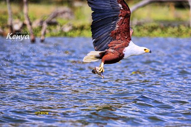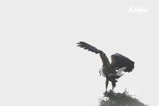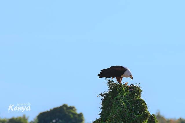 非洲海雕African Sea Eagle,也叫鱼鹰,一般生活在淡水湖附近,以鱼肉为主食,它们捕鱼的样子相当帅。海雕的配偶也是终生制,夫妻俩通常会筑下两个以上的巢,这些树皮或木料制作的巢可以扩建和重复使用,一个大号的巢可以达2米宽1.2米深。