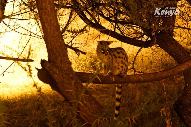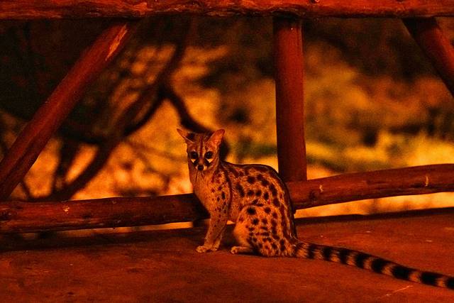 傍晚,同伴发现疑似猎豹的生物在草丛中移动,停下来细看,发现头比豹子小,是薮猫Serval,Seval来自西班牙语,意思是像鹿一样的狼,Allan称其为豹子的兄弟,非常罕见,他上一次见到薮猫已经是5年前了