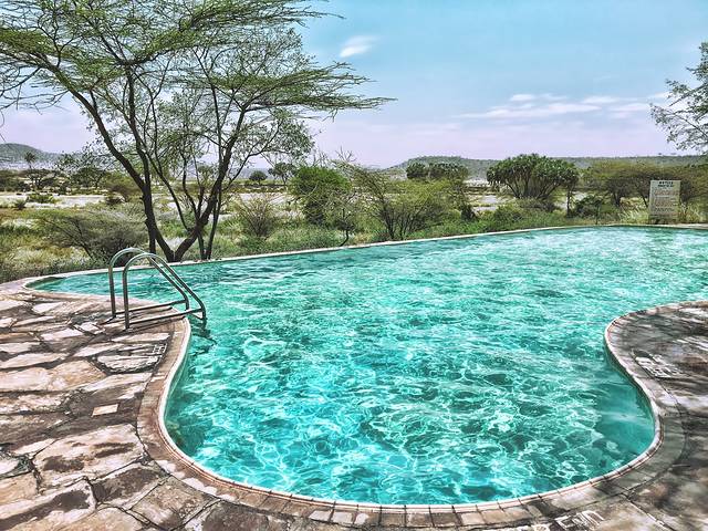 酒店在水牛泉区乌亚索尼伊罗河旁。房间较宽敞,阳台大,视野开阔,时见象群或食草动物前来饮水。开放式的餐厅和酒吧林木环绕,早午餐可与各种鸟儿共同进食(小心被抢),晚餐时间则会迎来一只南非大斑獛造访,也可能碰到鳄鱼隔着防护网冲你微笑。