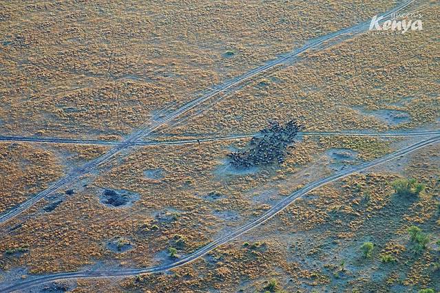 这一天,我们延着马拉河向东移动,准备前往马赛马拉的另一个营地。Allan说这一路东去,动物的数量会略少一些,这个说法和前面那张食草动物的迁徙图示是一致的,迁徙大军呈逆时针方向在马赛马拉和塞伦盖蒂连成的草原上转圈,8月份正好转到马赛马拉的西边。