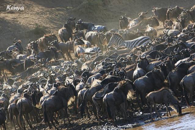 上面是制订行程前我跟一旅行社伙计的咨询对话。这个莫名让我感觉自己很愚蠢的回复迫使我自力更生地百度去了,我指的当然不是每天发生的迁徙,而是以角马为代表的数以百万计的食草动物为了追逐水源和青草、从坦桑尼亚的塞伦盖蒂草原向肯尼亚马塞马拉迁徙、途经马拉河时的惊险大片,6-9月份正是上演“天国之渡”的热门档期。但如果志不在此,也可以避开这个旅游高峰,另作安排。