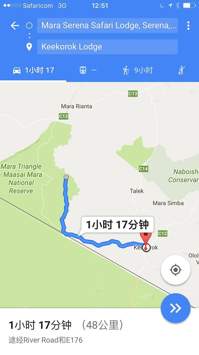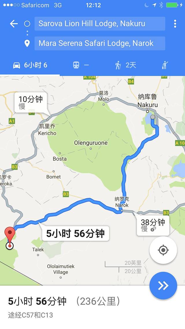 地图显示从Mara Serena到Keekorok Lodge的车程不算长,原本的安排是Safari过去,中午像昨天一样,在路上找个相对安全的地方野餐。草原野餐听起来还是挺有感觉的,前一天我们领队悠哉还想让我询问一下能不能从酒店借个折叠餐桌,铺上桌布浪漫一把。(我瞬间脑补的画面是就餐半途突遭猛兽来袭,我们向车上逃命的时候来不来得及先把桌椅收起来啊。)
