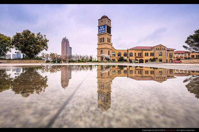 从万利国际向前走出去5分钟的距离就是市民广场和唐岛湾公园了。
