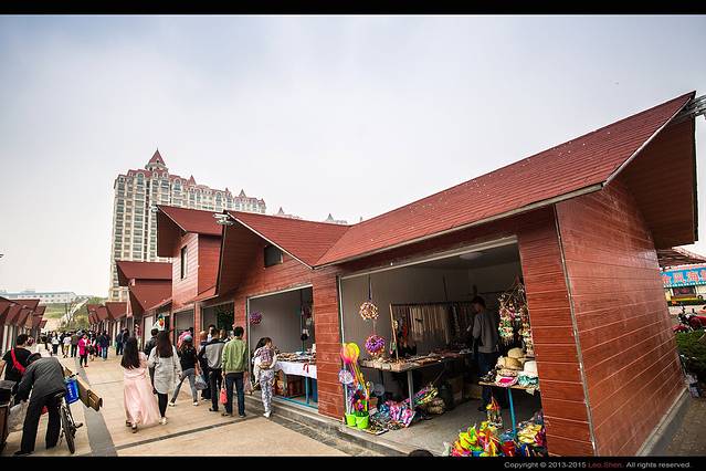 市民广场位于唐岛湾公园后方,站在部分楼顶依旧可以看到海景,目前大部分餐饮店仍在装修中,相信如果全面开放时或盛夏前往,场面还是很壮观的。