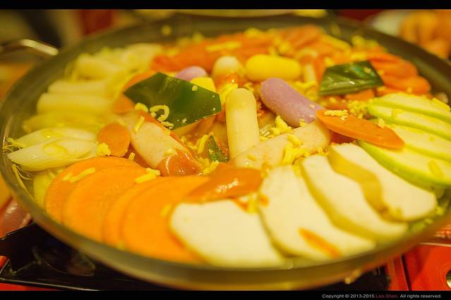 标准部队锅,如果吃的不够还可以再加芝士年糕和方便面等,都是韩国原装的,味道很正。