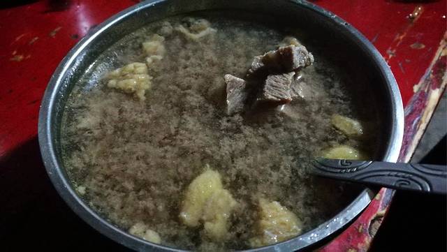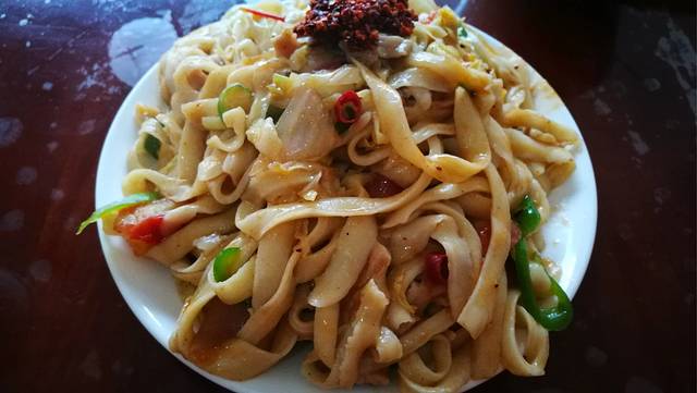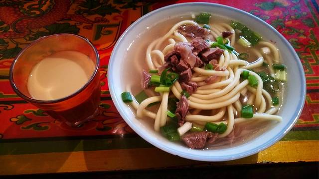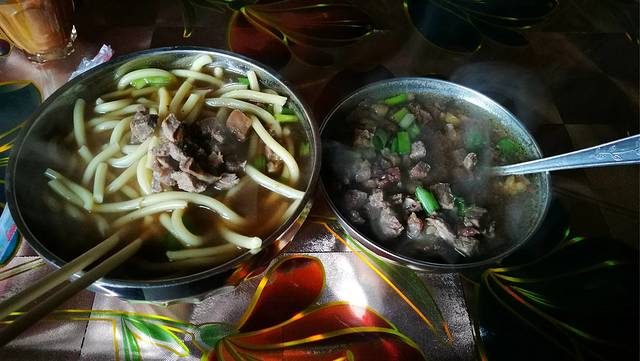 雨下的太大,所以我们在县城的入口处,找了一家茶馆,吃了藏面,还是挺可以的。
